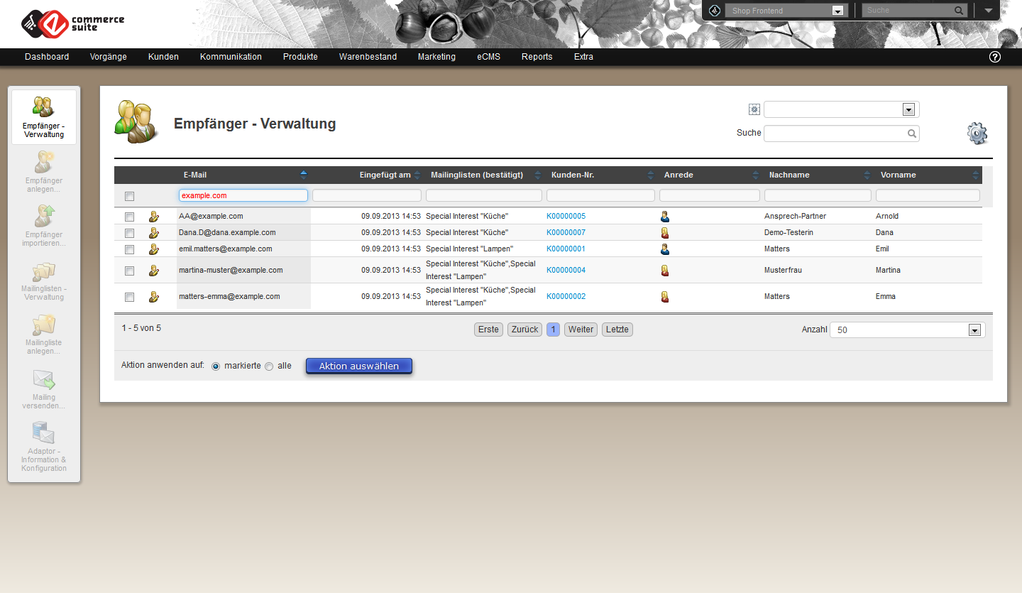 Ein weiteres Feature ist die Einbindung von Listenaktionen in die allgemeine Kundenliste. Damit können Sie direkt von dort Ihre Kunden einer Mailingliste zuweisen oder erstellen.